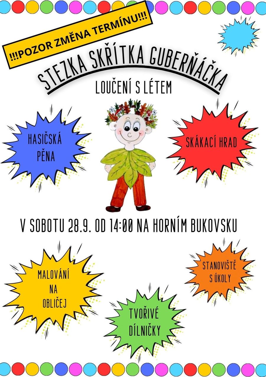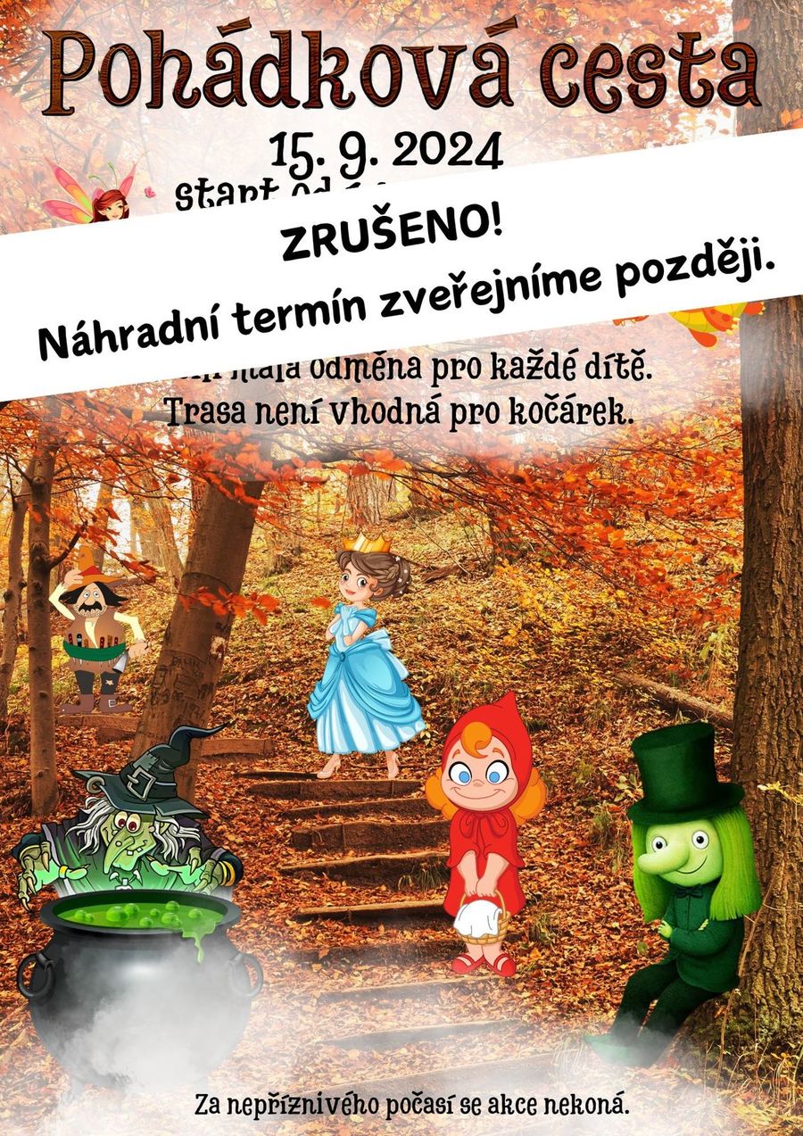 Z důvodu nepříznivého vývoje počasí rušíme Pohádkovou cestu. Náhradní termín zveřejníme později. Loučení s létem na Horním Bukovsku se překládá na sobotu 28. 9. 2024.