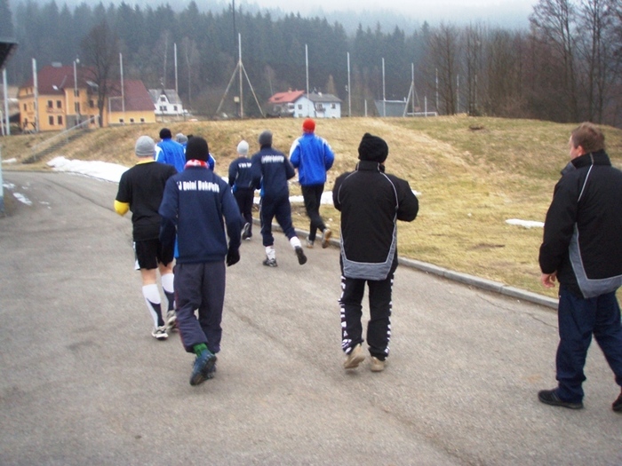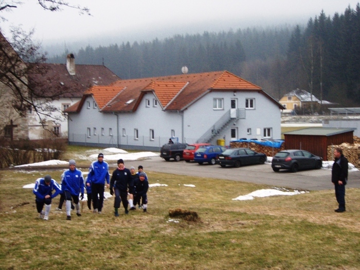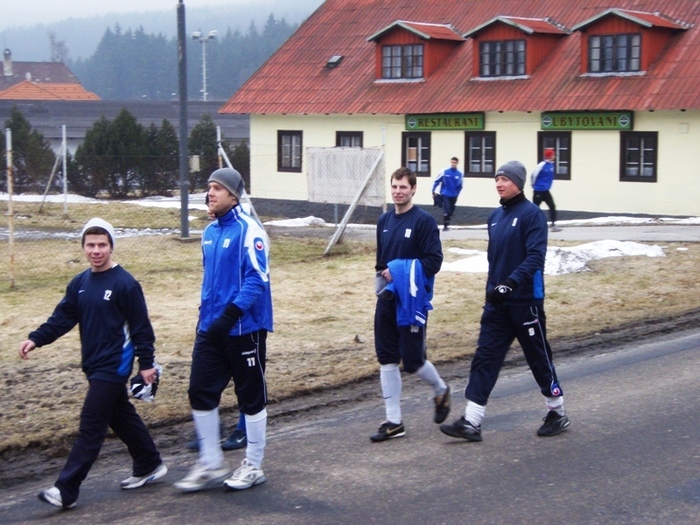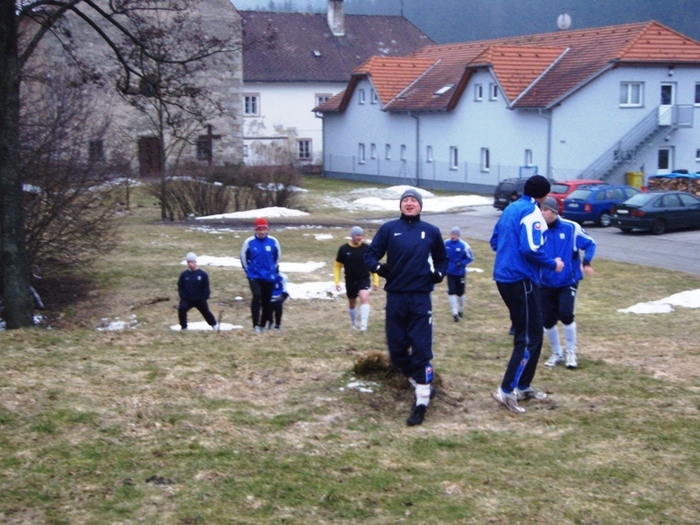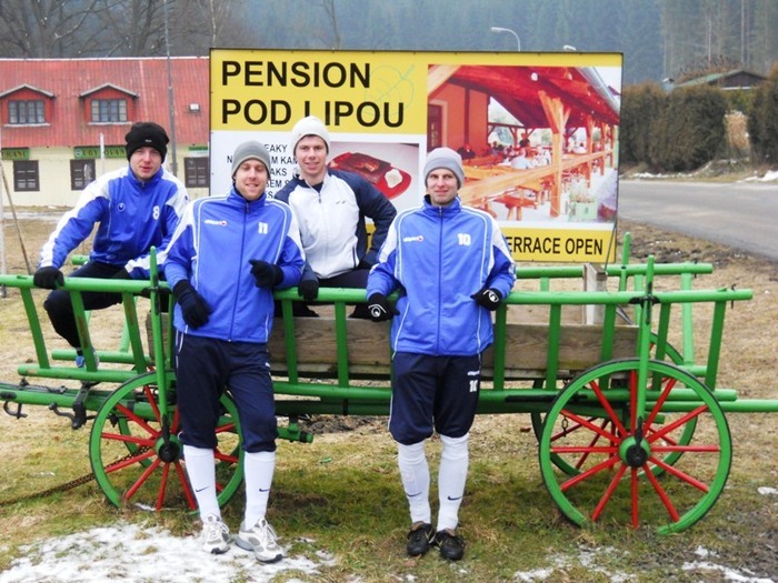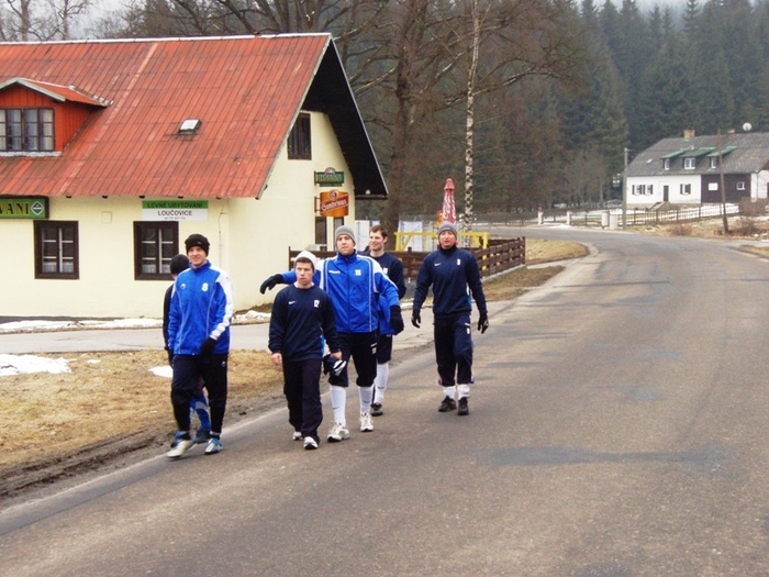 Letošní rok jsme vyrazili na soustředění do Loučovic již po páté. Příjezd v úterý večer, tři dny tvrdého tréninku a soustředění bylo zakončeno přátelským utkáním s Novou Vsí v Č. Krumlově. Průběh jednoho tréninkového dne Vám představíme slovem i fotograficky. Den začíná rozcvičkou, dále pokračuje snídaní. Následuje výběh dlouhý necelé dvě hodiny. Dále následuje oběd a klid po obědě. Druhá tréninková jednotka se odbyla v místní tělocvičně nebo na hřišti. Po tréninku večeře a regenerace v sauně a výřivce. Večer následovalo osobní volno na pokojích či klubovně. V sobotním utkání jsme nastoupili proti Nové Vsi, kterou jsme porazili 3:1 díky dvěma brankám L. Chochola a jedné D. Ardamici.